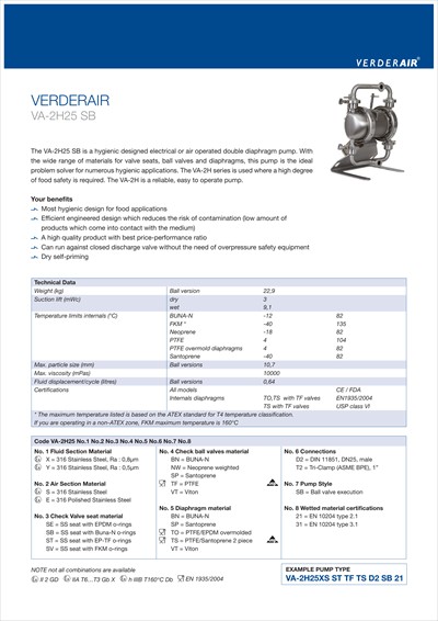 Browse Specification Sheets for VA 2H25 SB Verderair_HI-Clean_Datasheet_VA-2H25 SB_EU_INT_English_Datasheet